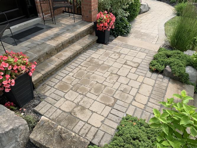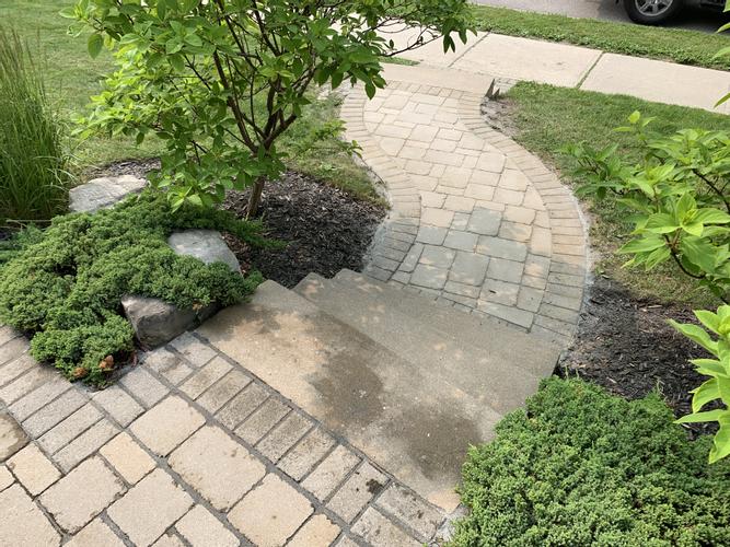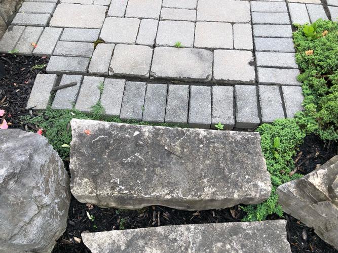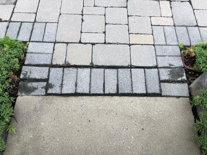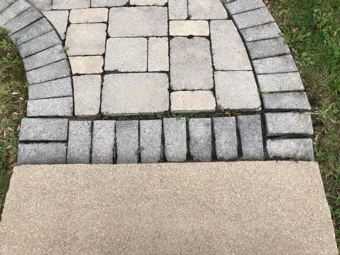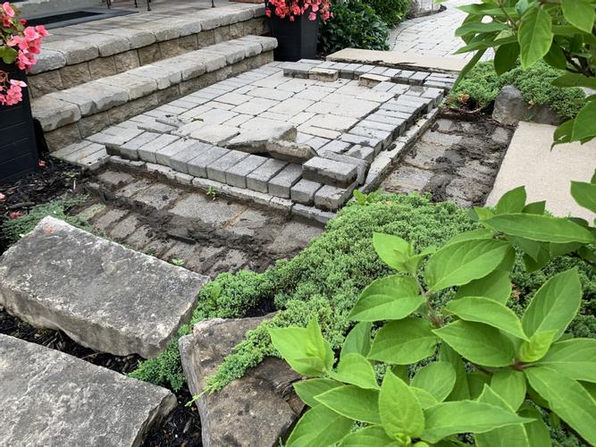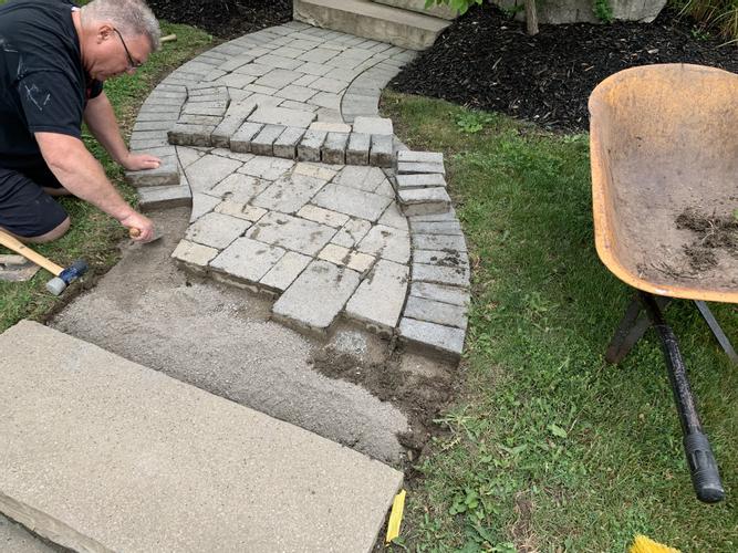 This client’s stone walkway was caving into the ground around her steps, in four different locations, she called me to fix it.